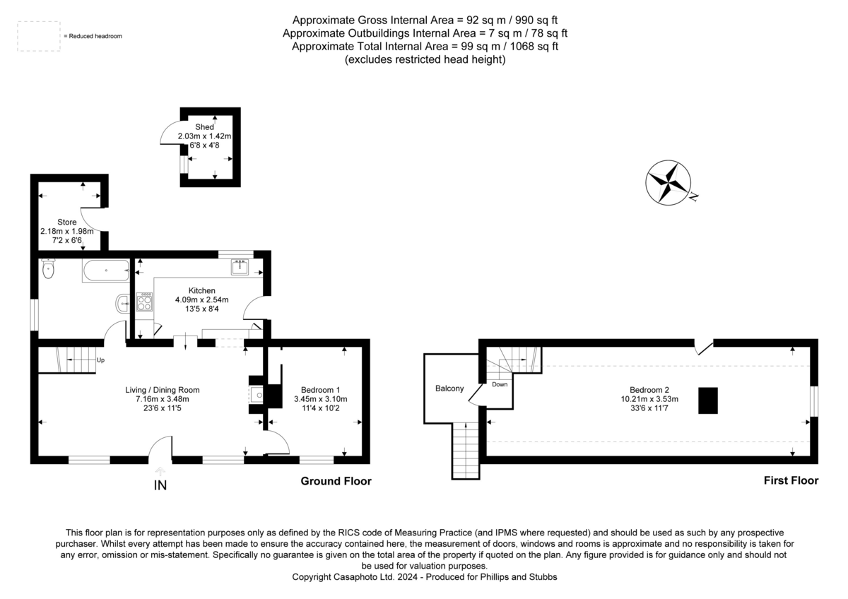 FIRST FLOOR On the first floor, there is a below eaves twin bedroom with a part glazed door opening to a balcony with an external staircase leading down to the shingle beach.